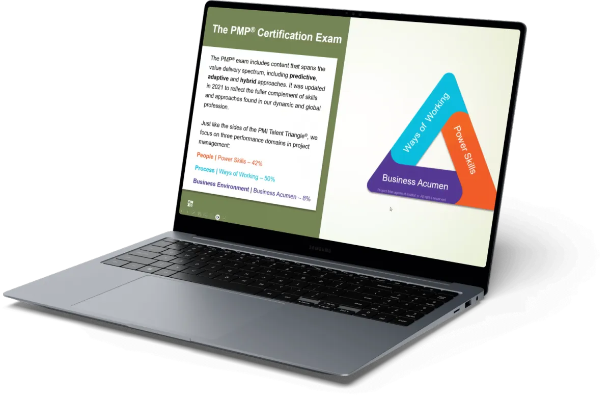 4 full days of live, instructor-led training (Virtual or In-Person). PMI-Authorized PMP Exam Prep Courseware (ATP-Licensed).